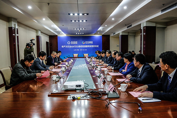 2017年2月8日,,,,,,,集团董事长邬建斌一行赴济南,,,,,,,与济宁高新区举行了“年产30万台6AT自动变速器”项目签约仪式,,,,,,,济宁市委书记王艺华、市长傅明先、高新区党工委书记白山出席了本次签约仪式。。。。。。。