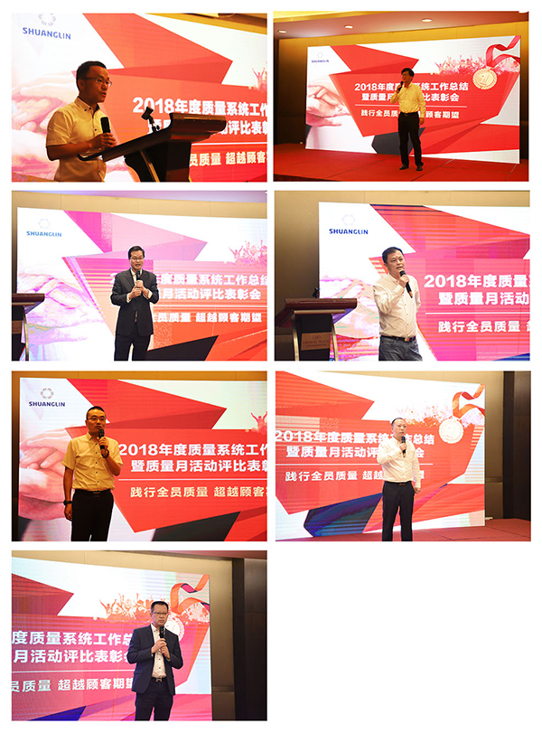 颁奖竣事后,,,,,,,,股份公司总司理顾笑映、股份公司副总司理陈有甫、股份公司副总司理兼汽车机电事业部总司理钱雪明、汽车饰件事业部总司理刘旭东、动力总成事业部副总司理王慧忠、新火炬科技公司副总司理戈舜均、德洋电子公司总司理王攀平划分对与会职员提出了2019年质量管理事情的期望。。。。。